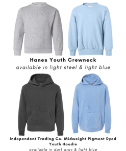 YOUTH CREWNECK – Hanes EcoSmart Kids’ Crewneck Sweatshirt (Light Blue & Charcoal Heather)