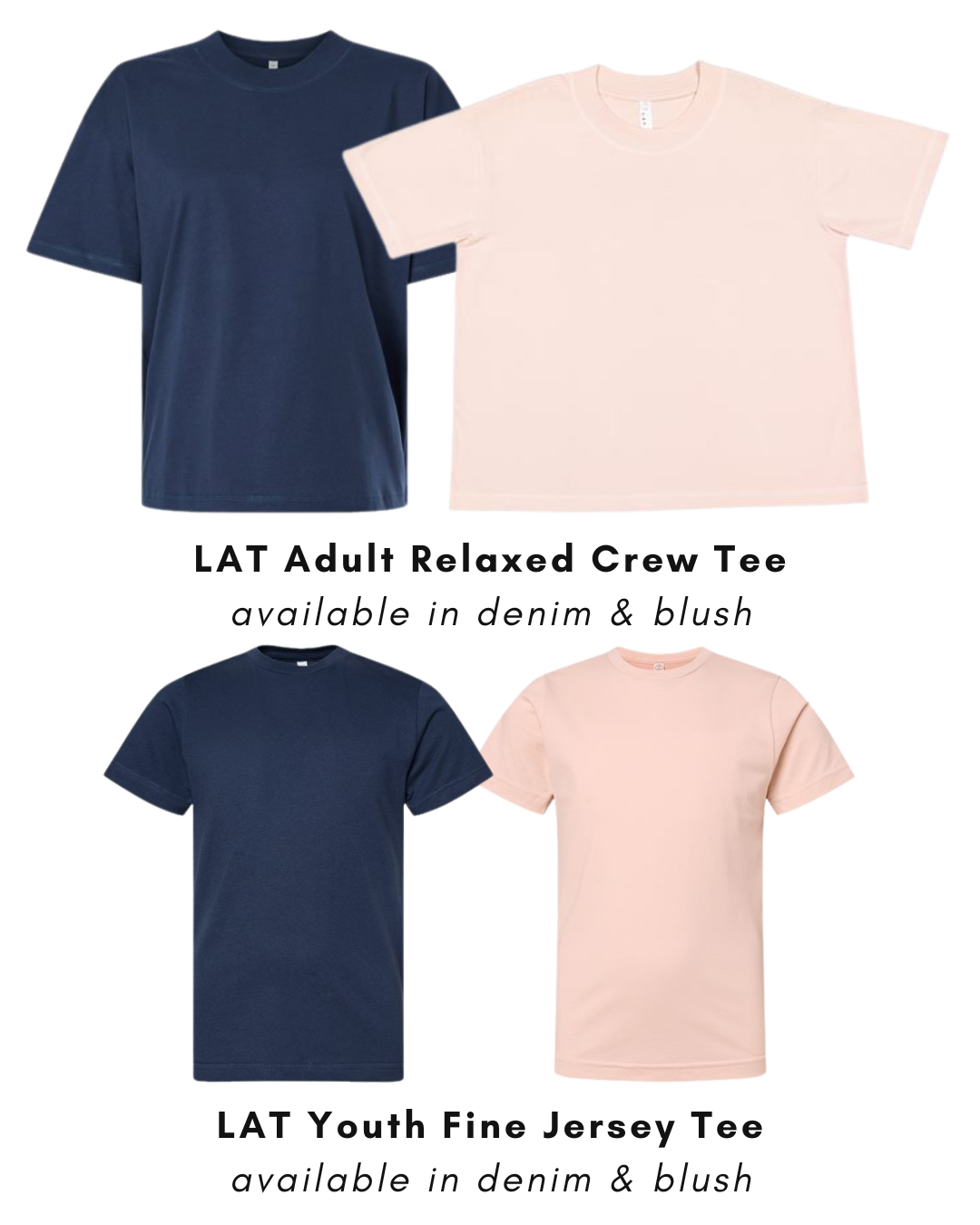 LAT Relaxed Crew Tee in Blush & Denim – Adult